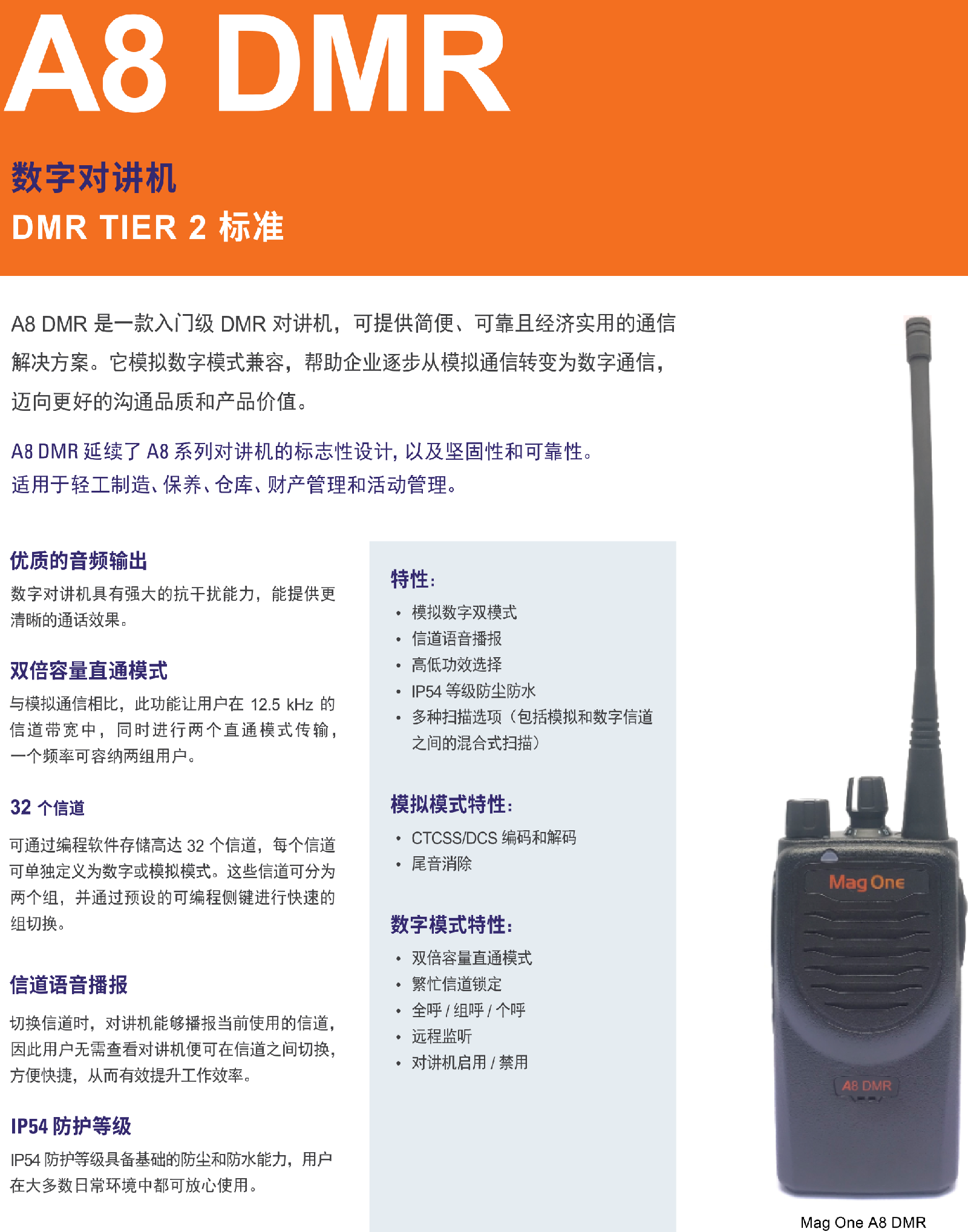 A8DMR是一款入门级DMR对讲机,可提供便、可靠且经济实用的通信