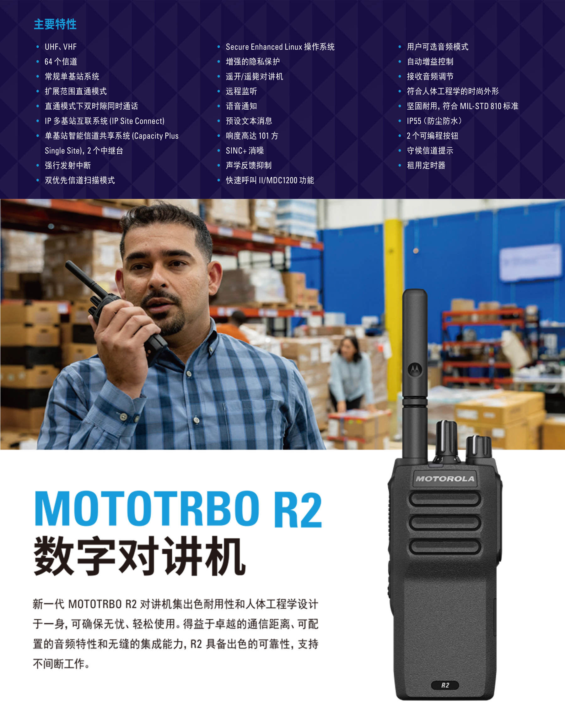 (3)R7出厂还具备专业数字集群功能支持(CP系统;LCP系统;Max系统 IP互联等)。
